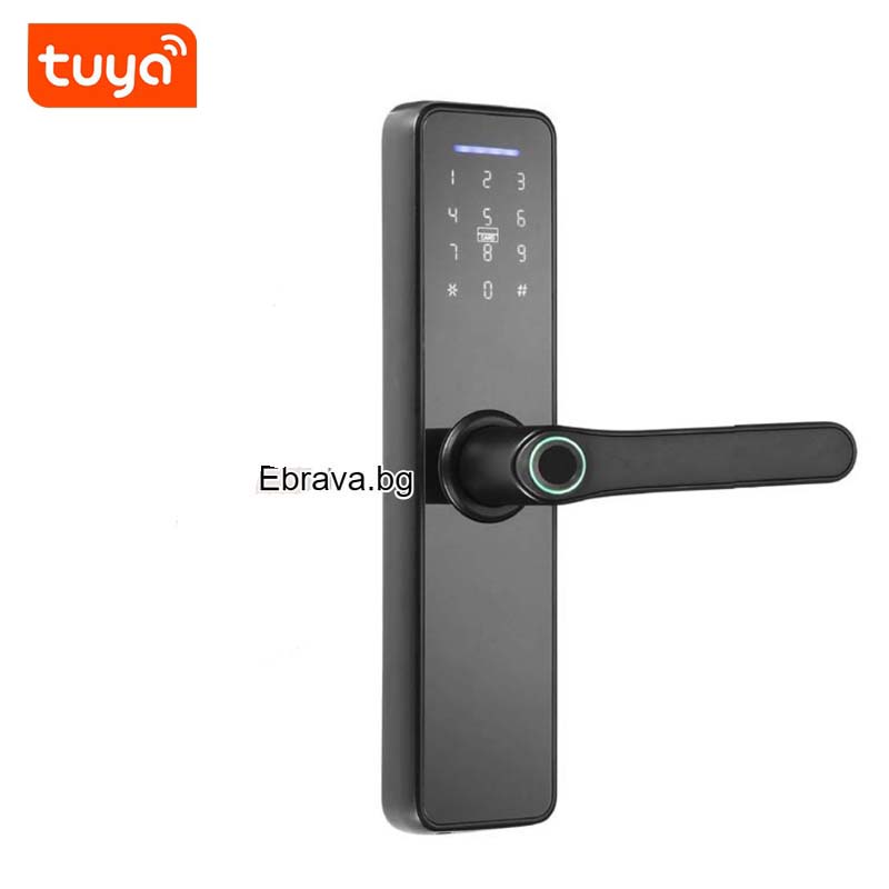 Отключване с отпечатък, код, RFID карта, пароли от мобилното приложение Tuya Smart WIFI, както и механични ключове. Замества старата брава.