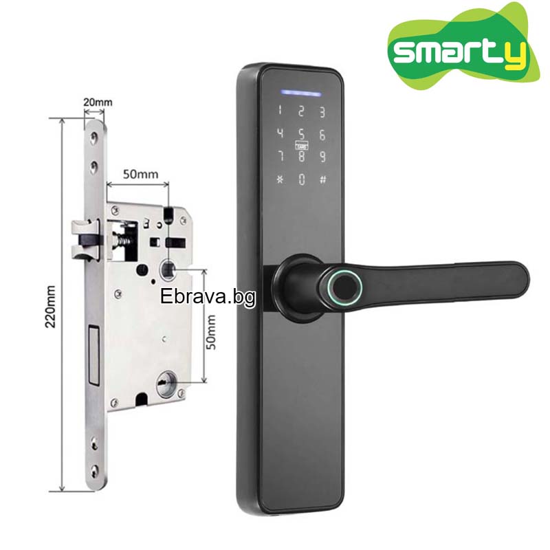 Отключване с пръстов отпечатък, 6-8 цифрен код, чип, механични ключове. Без WIFI модул и приложение. Замества старата брава.