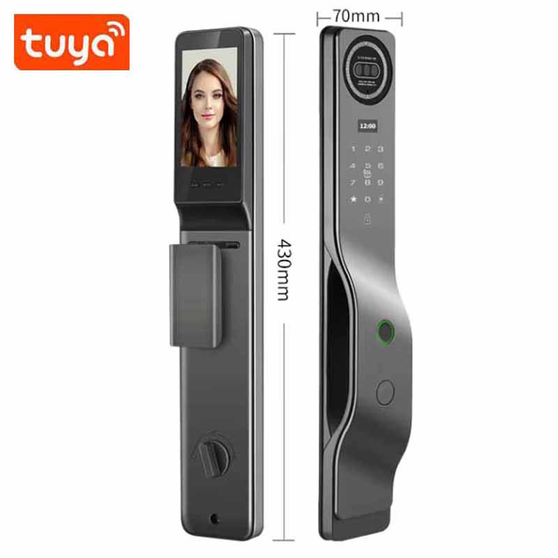 Солидна Smart брава с 3D лицево разпознаване, с код, отпечатък, парола, карта, пароли от мобилното приложение Tuya Smart